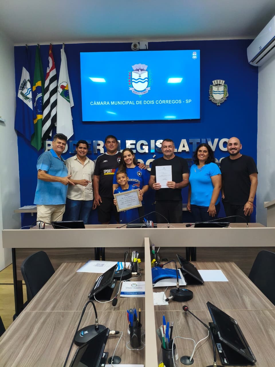 Nesta quinta-feira, 26/02, a Câmara Municipal teve a honra de entregar uma Moção de Aplausos ao Jovem Atleta Yuri de Oliveira Almeida em reconhecimento à sua destacada trajetória no esporte, especialmente no futebol, levando com orgulho o nome do município de Dois Córregos - SP.