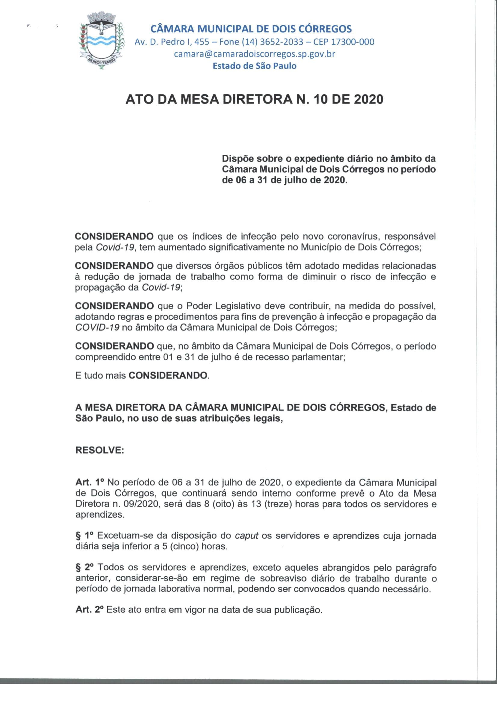 ATO DA MESA DIRETORA N. 10/2020