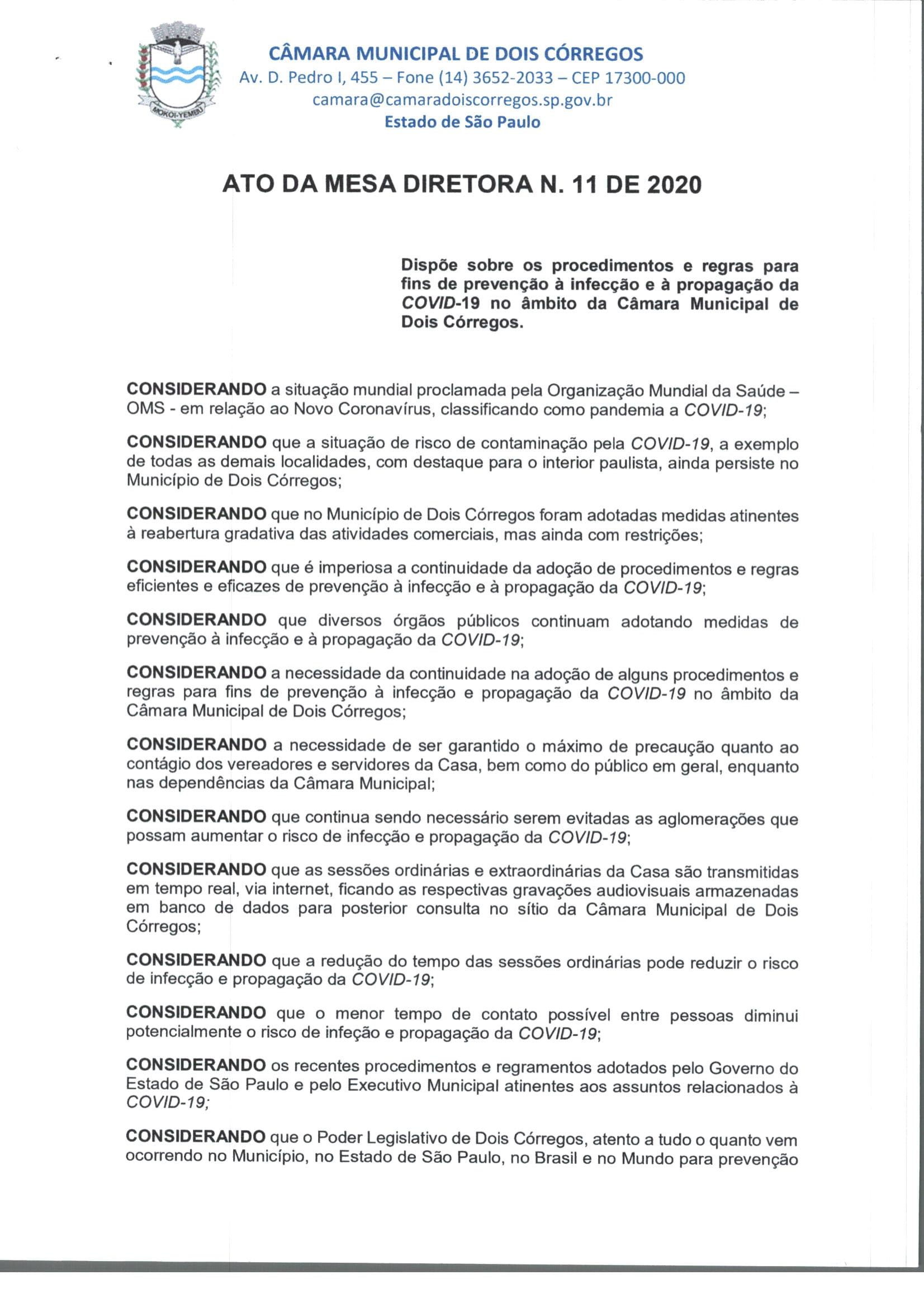 ATO DA MESA DIRETORA Nº 11 DE 2020